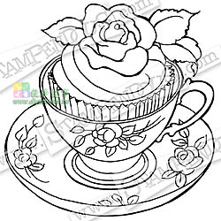 STAMPENDOUS 自黏草皮印章 - Teacup Cupcake Rubber Stamp