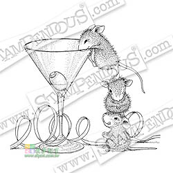 STAMPENDOUS 自黏草皮印章 - Martini Mice Rubber Stamp