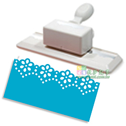 象牙白色外殼, 氣質典雅, 省力設計, 蕾絲細緻圖案, 加寬邊(約2cm), 可更深入紙邊, 打洞器壓出的圖案可在紙邊上做出柔和的美感與線條的變化, 附尺規座, 壓出每個圖案約 4.5cm, 可延伸花邊無限長..非常適合紙藝創作, 原廠出口, 品質保證.