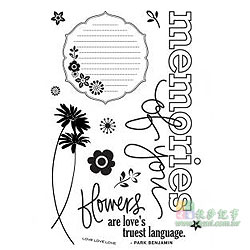 10 x 20 cm, 含數顆印章, 須配合透明壓克力握柄使用,可隨意撕貼或自行組合圖案. 美國進口