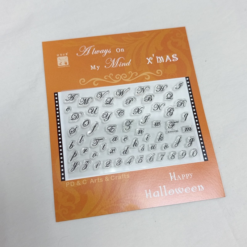 2009年牧莎設計款, 獨家發行, 實際尺寸: 5.9 x 9.3 cm, 透明印章(一組含大小寫英文字母各26個及0-9數字),透明且輕巧可隨意搭配組合! 須配合透明壓克力握柄使用。美國製。