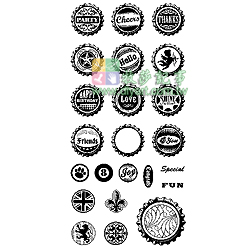 外包裝:10.5*24公分, 一組含23個透明印章, 須配合透明壓克力握柄使用,可隨意撕貼或自行組合圖案. 美國進口