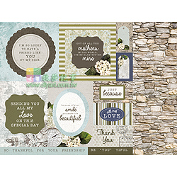 12" * 12", 雙面圖卡紙, 一張含多圖 (美好語句, 框..等),  可當成是一張已排版好的襯紙,  直接應用於相片美編黏貼(或搭配Kaisercraft 原廠設計之相片美編框),  亦可以自行裁切成圖卡運用,  非常經濟實惠,  適合美編或卡片紙藝創作, 無酸, 澳洲進口