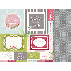 12" * 12", 雙面圖卡紙, 一張含多圖 (美好語句, 框..等),  可當成是一張已排版好的襯紙,  直接應用於相片美編黏貼(或搭配Kaisercraft 原廠設計之相片美編框),  亦可以自行裁切成圖卡運用,  非常經濟實惠,  適合美編或卡片紙藝創作, 無酸, 澳洲進口
