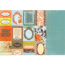12" * 12", 雙面圖卡紙, 一張含多圖 (美好語句, 框..等), 可當成是一張已排版好的襯紙, 直接應用於相片美編黏貼(或搭配Kaisercraft 原廠設計之相片美編框), 亦可以自行裁切成圖卡運用, 非常經濟實惠, 適合美編或卡片紙藝創作, 無酸, 澳洲進口