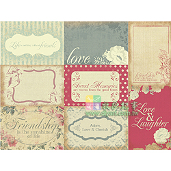 12" * 12", 雙面圖卡紙, 一張含多圖 (美好語句, 框..等), 可當成是一張已排版好的襯紙, 直接應用於相片美編黏貼(或搭配Kaisercraft 原廠設計之相片美編框), 亦可以自行裁切成圖卡運用, 非常經濟實惠, 適合美編或卡片紙藝創作, 無酸, 澳洲進口