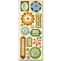 多層次立體造型圖卡貼紙,含19個設計圖案, 用來裝飾相簿或卡片,裝飾出復古高貴的質感,讓您的作品與眾不同。無酸貼紙,美國進口。包裝12 X34 CM, 美國進口。