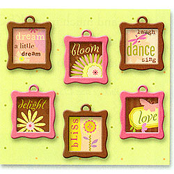 6個方形波浪造型框,小花圖案的吊飾, 美觀且有效的創作出具特色的優美作品,可以裝飾卡片,相本美編,或掛在禮物袋上,讓作品更具獨特性,美國進口。