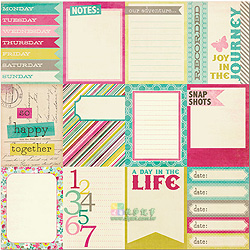 12" * 12", 雙面圖卡襯紙, 一張含多圖 (美好語句, 框..等), 可當成是一張已排版好的襯紙, 直接應用於相片美編黏貼, 亦可以自行裁切成圖卡運用, 非常經濟實惠, 適合Project Life 美編或卡片紙藝創作, 無酸, 美國進口。