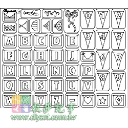 14X18CM, 含50個圖案, 須配合透明壓克力握柄使用,可隨意撕貼或自行組合圖案.,荷蘭進口.
