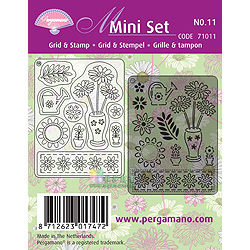 Home > Paper Lace > 紙蕾絲 迷你花式網版+透明印章超值組合 Mini set grid & stempel - NO.11