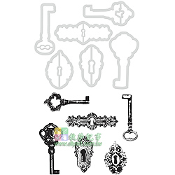 KAISERCRAFT 刀模+透明印章組 - Decorative Die & Stamp - Keys & Locks