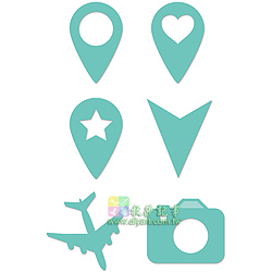 1.8 X 2.8 cm (3款), 2 X 2.5 cm, 相機: 2.5 X 2.2 cm, 飛機: 2.8 X 2.8 cm, 6片, 附磁鐵片方便收納定位, 適用市售多款刀模機, 澳洲進口