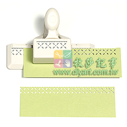 2011年春季新款, 象牙白色外殼, 省力設計, 蕾絲細緻圖案, 打洞器壓出的圖案可在紙邊上做出柔和的美感與線條的變化, 附尺規座, 壓出每個圖案約 4.5 X 1.2 cm, 可延伸花邊無限長..非常適合紙藝創作. 美國原廠直接輸入.