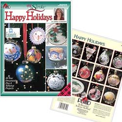 16個作品,以彩繪耶誕小作品為主題,一筆畫的筆法彩繪在可愛的小掛飾;盤子,詳細步驟圖,附圖稿. 2004.7.