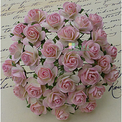 Home > Embellishment > 英國手工紙花-100 2-TONE BABY PINK/IVORY MULBERRY PAPER OPEN ROSES (網購單一價) WO-030-15mm