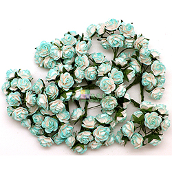 Home > Embellishment > Paper Flower > 英國手工紙花-100 2-TONE LT. TURQUOISE MULBERRY PAPER OPEN ROSES (網購單一價) WO-042-20mm