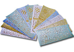 12入, 含3款耶誕相關圖案,有金、銀、淺綠、淺藍4種顏色,共12張布紋金質貼紙。特殊質感的細緻圖案及線條,一張內多種圖案,可自由創作,撕下黏貼於各式材質,鏤空處亦可著色,多重用途,非常適用於卡片、紙蕾 絲、紙藝美編、玻璃彩繪...等創作,致贈親友更能傳達您濃濃的心意及滿滿的祝福。 布紋的珠光質感,能讓作品更亮麗。全部聖誕系列的貼紙,讓您在這個特殊的日子,佈置出與眾不同的作品。
