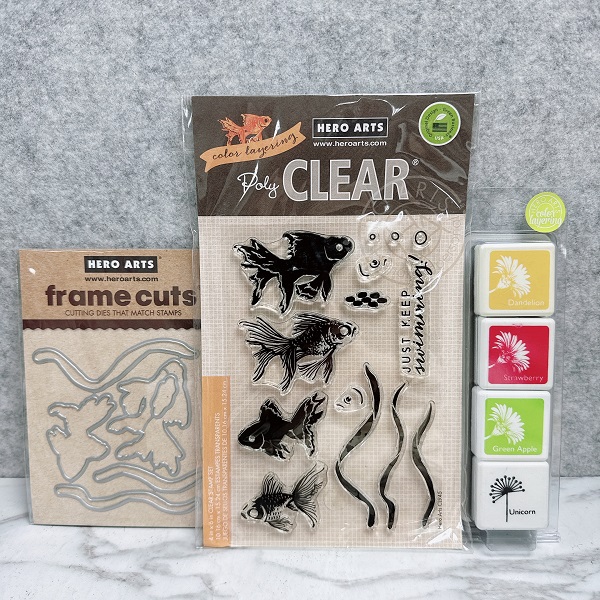 HERO ARTS 透明印章+刀模+印台 組 - COLOR LAYERING GOLDFISH BUNDLE - (網購優惠)