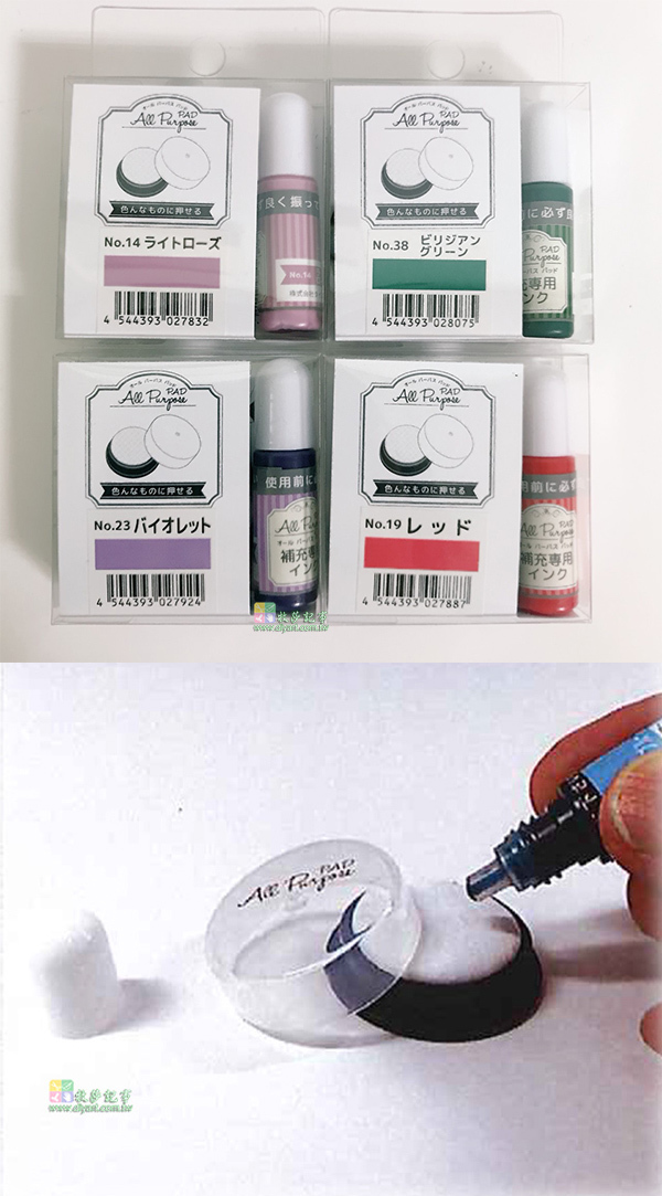 快乾油性印台, 多用途適用於紙, 布, 皮, 木製品以及非毛細孔表面如玻璃、陶瓷、鋁製品、塑膠、熱縮片、雨傘布、照片、鏡子等<日本進口>