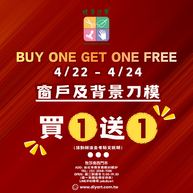 首頁 > 限時搶購 > 4/22 - 4/24 窗戶及字背景刀模, 原價買一送一