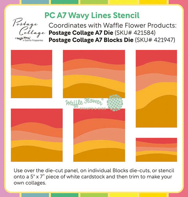 (2026) WAFFLE FLOWER 郵票背景框型版(流線畫套色3入) A7 - Postage Collage Wavy Lines Stencil (網購單一價)
