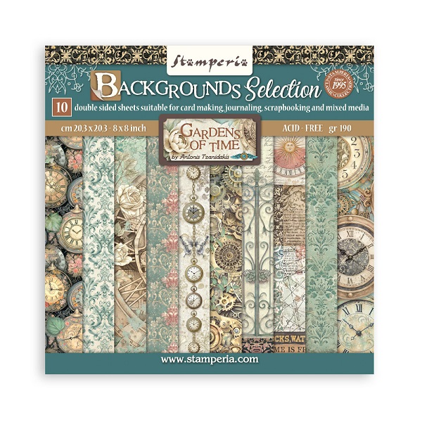 (2026) Stamperia 雙面襯紙本 Scrapbooking Pad 8"x8" - Backgrounds Selection - Gardens of Time - (網購優惠)
